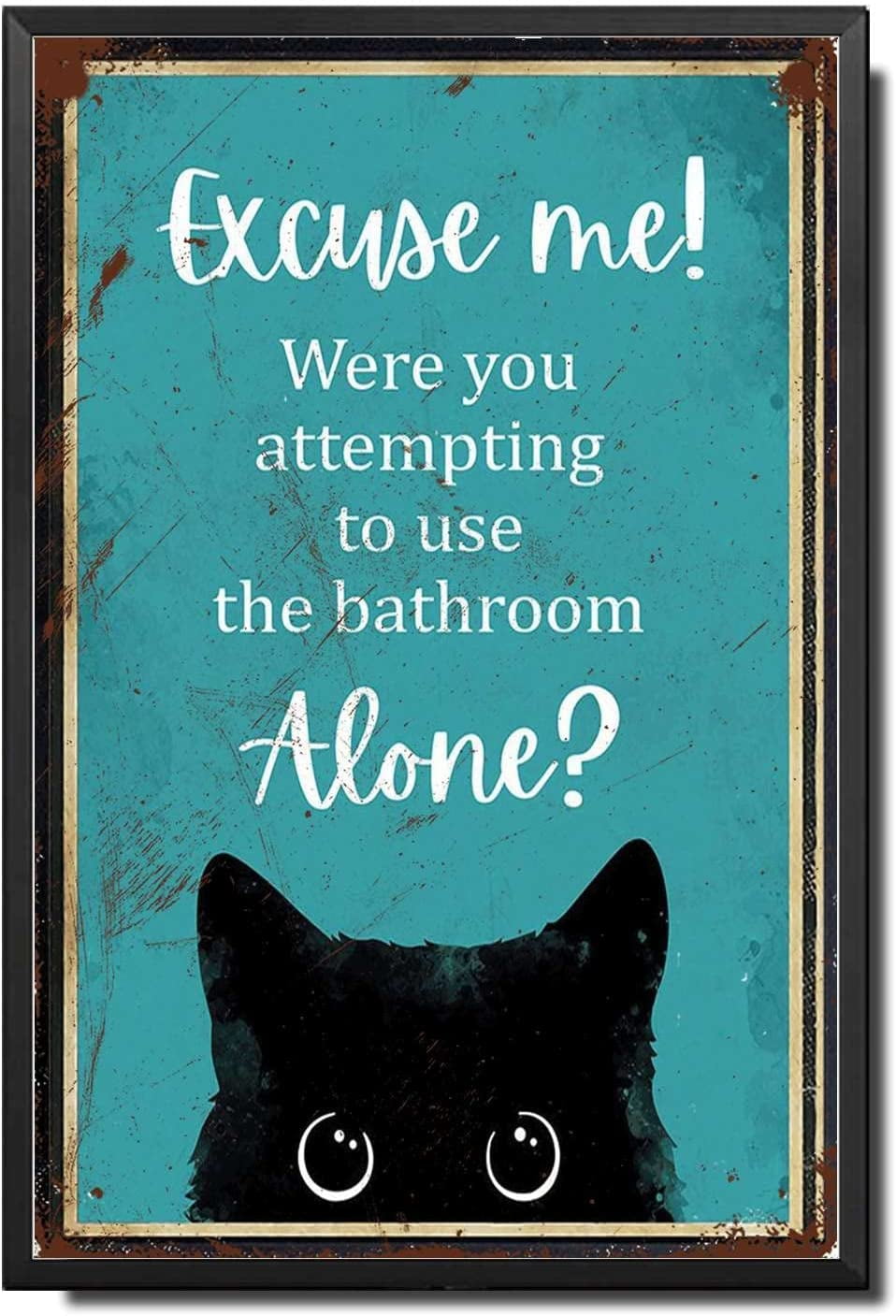 Metal Sign Tin Sign Vintage Wall Art Funny Cat Black Cat Excuse Me Were You Attempting To Use The Bathroom Alone Funny Toiletcat Home Decor For Garage 8 12 Inches With Metal Frame